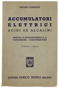 - Titolo: ACCUMULATORI ELETTRICI ACIDI ED ALCALINI. Principi di funzionamento e di costruzione. Caratteristiche. 42 figure e 2 tabelle.