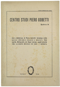 - Titolo: CENTRO STUDI PIERO GOBETTI. Quaderno n° 10. Dalla blblioteca di Piero Gobetti: Catalogo della sezione Letterature Classiche e Straniere...
