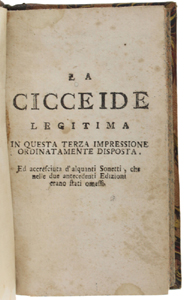 - Titolo: LA CICCEIDE LEGITIMA in questa terza impressione ordinatamente disposta. Ed accresciuta d'alquanti Sonetti, che nelle due antecedenti Edizioni erano stati omessi.