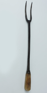 - Titolo: FORCHETTONE ANTICO IN FERRO FORGIATO PER BARBECUE, manico in legno, lunhezza 31,5 cm