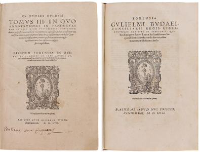 - Titolo: G. BUDAEI OPERUM tomus III in quo annotationes in pandectas tam priores quam posteriores comprehenduntur... - EIUSDEM FORENSIA, IN QUIBUS et vulgares et vere latinae iurisconsultorum loquendi formulae traduntur...