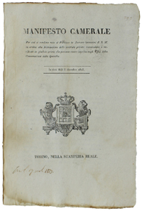 - Titolo: MANIFESTO CAMERALE Per cui si rendono note le Sovrane intenzioni in ordine alle ipoteche ...5 dicembre 1823 [documento originale]
