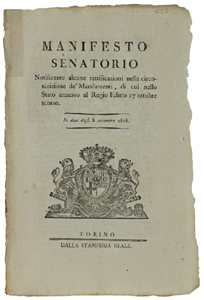 - Titolo: MANIFESTO SENATORIO Notificante alcune rettificazioni nella circoscrizione de' Mandamenti... In data degli 8 novembre 1815 [documento originale]