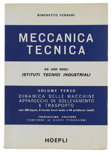 - Titolo: MECCANICA TECNICA. Volume Terzo : Dinamica delle macchine - Apparecchi di sollevamento e trasporto. 13a edizione con 268 figure, 8 tavole e 60 problemi risolti.
