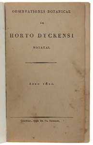 - Titolo: OBSERVATIONES BOTANICAE IN HORTO DYCKENSI NOTATAE. Anno 1820.