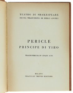 - Titolo: PERICLE PRINCIPE DI TIRO tragicommedia in cinque atti. Nuova traduzione di Diego Angeli.