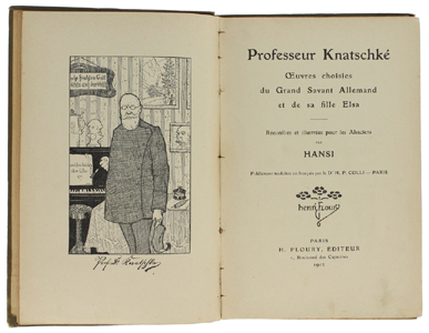 - Titolo: PROFESSEUR KNATSCHKE'. Oeuvres choisies du Grand Savant Allemand et de sa fille Elsa Recueillies et illustrées pour les Alsaciens. par Hansi, fidèlement traduites en français par le Dr H.P.Colli - Paris.