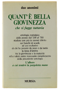 - Titolo: QUANT'E' BELLA GIOVINEZZA che si sfugge tuttavia : antologia nostalgica delle poesie dal '200 al '700 ad uso esclusivo di chi ha passato da poco o da tanto la linea d'ombra tra la giovinezza e la maturità
