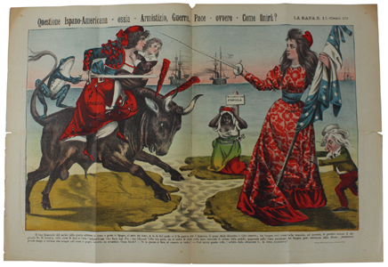 - Titolo: LA RANA - Giornale Umoristico con caricature e disegni a colori. Anno XXXIV/1898 n. 15: QUESTIONE ISPANO-AMERICANA OSSIA: ARMISTIZIO, GUERRA, PACE OVVERO- COME FINIRA'?