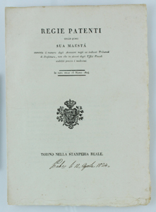 - Titolo: REGIE PATENTI colle quali SUA MAESTA' aumenta il numero degli Assessori negli ivi indicati Tribunali di Prefettura... In data delli 16 marzo 1824