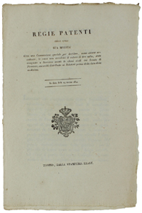 - Titolo: REGIE PATENTI Colle quali Sua Maestà crea una commissione speciale... . 29 marzo 1822 [documento originale]