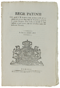 - Titolo: REGIE PATENTI colle quali S.M. dichiara irrevocabili gli acquisti... fatti ne' suoi Rregi Stati di Terra-Ferma pendente il cessato governo... in data 22 settembre 1818.