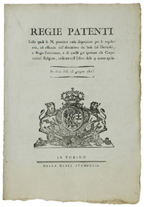 - Titolo: REGIE PATENTI relative all'alienazione dei beni del Demanio e Regio Patrimonio... In data delli 13 giugno 1815 [documento originale]