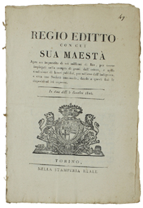 - Titolo: REGIO EDITTO con cui SUA MAESTA' apre un imprestito di sei milioni di lire... In data delli 3 dicembre 1816 [documento originale]