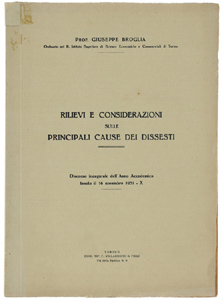 - Titolo: RILIEVI E CONSIDERAZIONI SULLE PRINCIPALI CAUSE DEI DISSESTI. Discorso inaugurale dell'Anno Accademico tenuto il 16 novembre 1931-X.