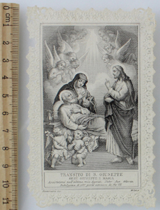 - Titolo: Santino: TRANSITO DI S. GIUSEPPE - Gesù Giuseppe e Maria mm 115x73. Litografia, cornice trinata