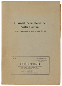 - Titolo: I SAVOIA NELLA STORIA DEI NOSTRI COMUNI: POTERE CENTRALE E AUTONOMIE LOCALI. Atti del Convegno. Bollettino N. 89