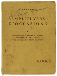 - Titolo: SEMPLICI VERSI D'OCCASIONE. II: Per Convegni e piccole Accademie (specialmente di Azione Cattolica). Per Ricorrenze e Feste religiose.