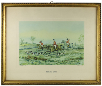 - Titolo: THE FOX HUNT - Litografia d'epoca con cornice dorata.